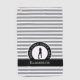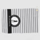 This modern grey and white striped golf towel features a female golfer silhouette framed in a black and white emblem with the repeating text “GOLF GOLF GOLF GOLF.” A sleek black band holds a customizable template for a name, initials, or short text. The neutral palette keeps the design stylish and feminine without being overly girly, making it a perfect personalized gift for women golfers. All colours and text can be edited in Zazzle’s design tool.