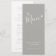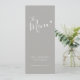 Modern grey and white text wedinner menu ou special event menu. Edit this 4 course menu with your own words. Simple yet moderne typographic and little white heart menu. Idéal for a simple grey wedding or heart or gray white themed event. © Design www.mylittleedenweddings.com on zazzle.