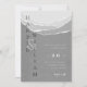 Modern minimalistic grey wedding invitation featuring an image of torn paper mountains. Modern vertical script with bride and groom´s name.