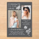 Modern Grey White Butterfly Photo Graduation Party Acrylic Invitations features the simple text "Congrats to the Grad" accented with a flower and butterflies with two of your favourite photos and personalized with name and graduation party details in elegant white script typography. Personalize by editing the text in the text boxes provided and adding your favourite photos. Designed by ©2023 Evco Studio www.zazzle.com/store/evcostudio