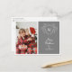 Spread Christmas cheer with this elegant and modern Christmas postcard featuring a white line art mistletoe design framing a classic crest easily customizable with your initials over a modern grey background. Easily customize this holiday postcard by uploading one of your favourite family portraits. The back of the postcard is fully customizable, allowing you to add a personal message to your friends and loved ones.
