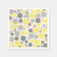 Modern and fun paper party napkin features- grey and yellow bubbles in a variety of sizes on white background