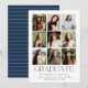 Modern Grid Navy 9 Photo Collage Graduation Announcement