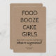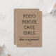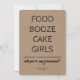 "FOOD BOOZE CAKE GIRLS NOW THAT I HAVE YOUR ATTENTION will you be my Groomsman?" Funny proposal cards.