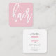 Modern Hair Stylist Script Blush Pink Appointment Square Business Card