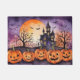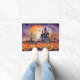 Modern Halloween Orange Pumpkin Haunted House Bats Doormat