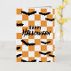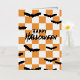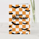 Modern Halloween Spooky Bats Orange Chequerboard Foil Greeting Card