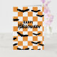Modern Halloween Spooky Bats Orange Chequerboard Card illustrated by international designer, Kathrin Legg.