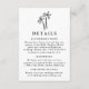 Share essential wedding information with your guests using this modern details card, featuring a hand-drawn black palm tree at the top of a white background. Perfect for tropical, coastal, or destination weddings, this minimalist design offers space to include hotel accommodations, reception details, your wedding website, and more. An elegant and practical addition to your wedding invitation suite.