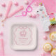 Modern Hand Drawn Bow Pink Girl Birthday Paper Plate