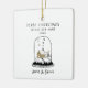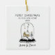 Celebrate a special milestone with this charming hand-drawn First Christmas in Our New Home ceramic ornament. Featuring a cute illustrated house inside a delicate snow-globe scene, this unique design captures the warmth and excitement of settling into a new home for the holidays. Easily customize the names and year to create a meaningful keepsake for couples, families, or new homeowners.