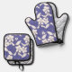 Modern hand-drawn white flowers on a periwinkle oven mitt & pot holder set