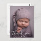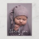Personalize these minimalist elegant Baby shower thank you cards with a beautiful photo of your baby. Thank your family and friends who have showered you with their love and introduce your new baby with an image they can cherish for many years to come. The cards feature modern elegant "Thank You" handlettering script with a tiny heart and classic typography custom thank you message on the reverse. A wonderful way to thank your baby shower guests once baby is born! Please mind, that the handritten text is in white and it would look better on the darker background photo.