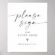 Invite guests to leave their heartfelt messages with this modern black and white wedding guest book sign. Designed in a minimalist style with simple handwritten typography, this tabletop wedding sign adds an elegant, contemporary touch to your décor. Perfect for modern couples who love clean, stylish design, it beautifully complements any black and white wedding theme while guiding guests to sign your guest book.