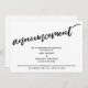 This suite's distinction is due to the modern, handwritten script font used for accent phrases. In this piece, the hand-lettered script font was used to create a graphic depicting the word "announcement". Use the template fields to add your personal details and make this unique, modern design your own. The white background can be changed to any colour you prefer. Please reach out with any special requests or for customizing assistance. // 100 //