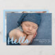 Modern Handwritten Hello Blue Photo Collage Birth Announcement