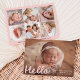 Welcome your little one with this sweet and simple birth announcement design featuring your baby’s horizontal photo with “Hello” displayed in a soft blush-pink handwritten script. Customize with your baby's name, birth date, and stats on the front, while the back showcases a collage of six square photos with room below for your family’s names or a short message. This charming design is perfect for baby girls and adds a warm, tender touch to your big announcement.