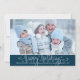 Send HAPPY HOLIDAYS greetings with this photo holiday card featuring one photo, a modern handwritten script title against an editable blue green background. (PHOTO TIP: For fastest/best results, choose a photo with the subject in the middle and/or pre-crop it to a similar shape as shown BEFORE uploading and use the CHANGE tab in the PERSONALIZE section.) COLOR CHANGE: You can change the background color on the front and back to coordinate with your photos by clicking on the CUSTOMIZE FURTHER tab. For modifications or assistance, contact the designer BEFORE ORDERING via Zazzle Chat or makeitaboutyoustore@gmail.com.