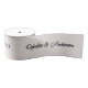 Elegant personalized wedding ribbon featuring a classic pearl white background with alternating monogram and full name text in stylish black script and serif fonts. Perfect for adding a refined and custom touch to wedding favours, gift wrapping, décor, or event packaging. This repeating text design provides a seamless, luxurious look while offering full customization for initials and names. Ideal for weddings, anniversaries, engagements, or special events, this timeless ribbon design complements a wide range of colour schemes and celebration styles with its clean, romantic aesthetic.