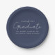 Modern Handwritten Script Navy Graduation Paper Plate
