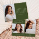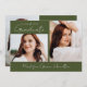 Announce your graduate's achievements and plans with this stylish, modern photo graduation announcement. The front of the announcement displays 2 photos - 1 horizontal and 1 vertical photo. "Graduate" is displayed in a trendy, handwritten white script with an olive green background. Personalize the olive green graduation announcement with the year and the graduate's name. The announcement reverses to display an additional photo with your custom text in white lettering. This 3 photo graduation announcement is perfect for high school or college graduations.