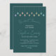Introducing our beautiful green wedding party invitation featuring pretty pastel hanging lights at the top, creating a modern and fun aesthetic that will perfectly suit a modern bride. The words "Bridal Shower," the bride-to-be's name, and registry information are presented in a pretty blue-green colour that matches some of the hanging light colours, while the rest of the text is in clean and crisp white.