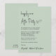 Chic light sage green wedding reception invitation with "Happily Ever After Party" in a minimalist modern script. Easily personalize your invitation and add your names in a signature-like script.