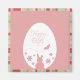 Happy Easter illustration featuring a simple minimalist Easter egg coloured with silhouettes of a rabbit, butterfly, flowers and Easter greeting on a pink pastel background with a striped frame.