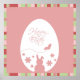 Happy Easter illustration featuring a simple minimalist Easter egg coloured with silhouettes of a rabbit, butterfly, flowers and Easter greeting on a pink pastel background with a striped frame.