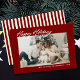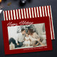 Modern red and white holiday photo card with a photo layout, ideal for couples or families seeking a personalized and elegant way to share seasonal greetings. The design features a bold red border that surrounds your custom holiday photo, creating a clean and refined look perfect for showcasing a cherished family portrait. At the bottom, add a personalized message and year, making it easy to customize for any family or couple. The back of the card displays chic hand drawn red and white stripes, adding a stylish and cohesive finishing touch. This festive holiday card suits modern, minimalist tastes while offering a warm and heartfelt presentation. Perfect for sending Christmas, New Year, or winter holiday wishes with a contemporary, timeless aesthetic, this design is both visually appealing and highly versatile for a wide range of recipients and family styles. Available as printed cards or an instant digital download.