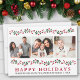Modern Happy Holidays Greenery Berries 3 Photo Holiday Card