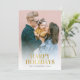 Contemporary holiday card featuring a family photo, the words "happy holidays" in a elegant golden yellow gradient typeface, your family name, and the year.