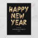 Modern Happy New Year Black and Gold Non-Photo Holiday Postcard