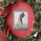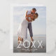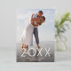 Happy New Year in real silver foil is printed over your favourite photo with your names below. A silver grey and white stripe design is printed on the back.