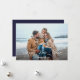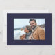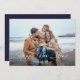 This is an elegant and simple modern New Years card featuring a minimalist photo combined with “Happy New Year” in a beautiful handwritten script font. The back of the card uses an elegant and fresh white and navy blue stripe design.