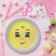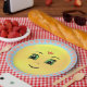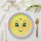 Modern cute happy sun face and pink hearts on light blue Paper Party Plate.