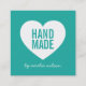 Modern minimalist business card with the word "Handmade" in bold font against a white heart and a stylish script for your name or store name. It also has an editable background colour (change it to whatever you like) and change font colour to match as well which you can access by clicking "customize" button. This stylish square handmade business card is ideal for crafters and makers of handmade goods like artists, knitters, dressmakers, etc. It also works well as a gift tag, favour tag or product tag for your handmade goods.