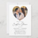 Simple couple's shower invitation featuring your engagement photo nestled inside of a heart-shaped frame on a white background. Personalize the photo couple's shower invites with your names and shower details shown below in black lettering with "Couple's Shower" displayed in a handwritten script.