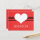 Sweet and charming Modern Heart Wedding Table Number Postcard featuring a red background and a cute heart and striped border. This simple yet bold table postcard is perfect for adorning the reception tables at your very modern and contemporary wedding. Easy to customize, simply add the appropriate table number(s) in the text field provided. Click on "Customize" to find additional personalization options.
