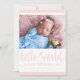 Modern Hello World Photo Blush Pink Birth Stat Announcement