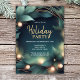 Modern corporate Holiday party Invitation. The design features an elegant wreath with lights on a dark green background Use the design tools to customize the text, font and colours, and to add your logo. Also available as digital download for evites.