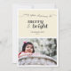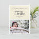 "Merry and bright" Holiday card featuring one photo and the words, in a curved text, "may your christmas be merry and bright". A white border and black text are printed on a cream background.