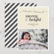 "Merry and Bright" photo christmas cards, in black and cream, with white and black diagonal stripes (back) and cute black script font.