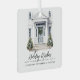 Modern script "Holiday Wishes" watercolor front door decorated in holiday greenery image metal ornament. Makes a perfect gift to say thank you to your customers.