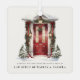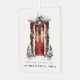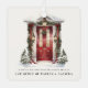 Modern script "Holiday Wishes" watercolor front door decorated in holiday greenery metal ornament.