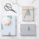 Modern Holiday Wrapping Paper Sheets with Winter Pine Tree and Snowflake Design.