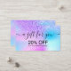 Who doesn't like a good discount?! Treat your customers right with our Modern Holographic design. If you want to change the font style, colour or text placement, simply click the "Customize Further" button. If you need help with the design, please don`t hesitate to contact me!