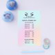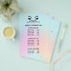 This modern and sophisticated price list design features a glamourous , minimalistic illustration of a woman's eyelashes with rosegold eyeshadow, a title and a block where you can insert all your informed consent details on a Holographic unicorn background.