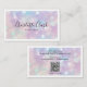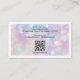This modern holographic business card features your name or business name in elegant script typography set against a trendy iridescent glitter background. This business card is perfect for professionals in the beauty industry and beyond (esp. makeup artist, nail specialist, beauty salon owner, hair stylist, beautician, aesthetician, and more). You can personalize the front with your name and title (or website address/location) and add your contact information (including website address and social media accounts), scannable QR code and "connect with us" text on the back.