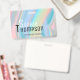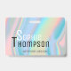 Professional holographic liquid marble illustration in rainbow pastel shades; your name and text written with trendy typography letters. Does not contain a real hologram.